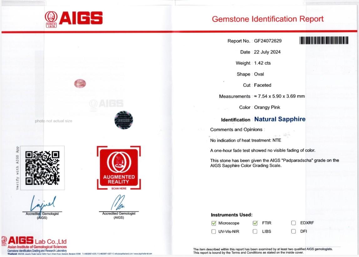 • Grading Note: Classified under AIGS “Padparadscha” Sapphire Color Scale