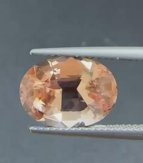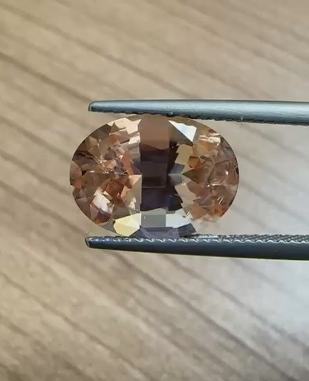 The oval brilliant-step cut maximizes internal fire and clarity, while maintaining balanced pastel tones that shift delicately between blush rose and golden apricot under varying light.